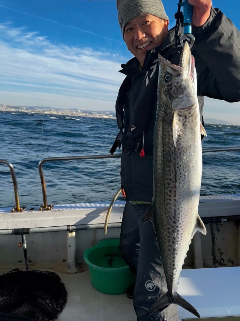 早朝のポイントでハマチを1匹、その後ポイント移動でサワラが釣れました。その時ほかのメンバーもかかったようでしたがラインブレイクでした。