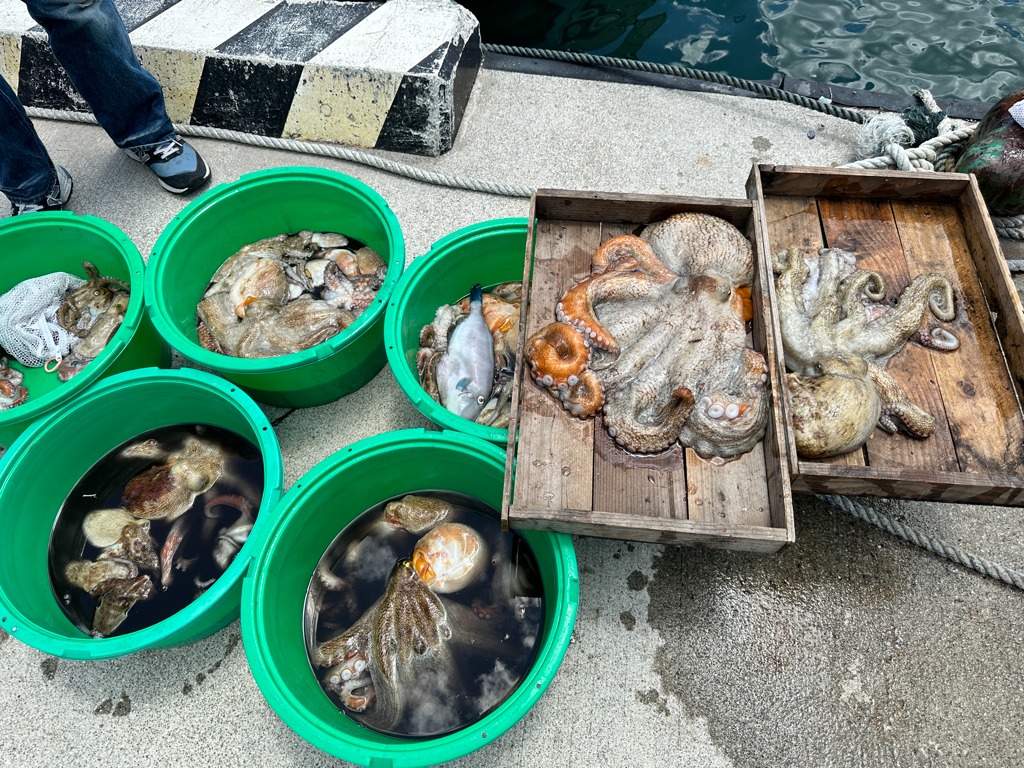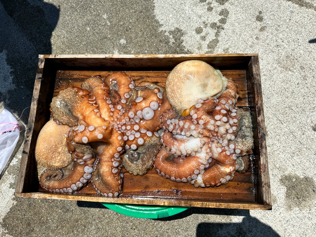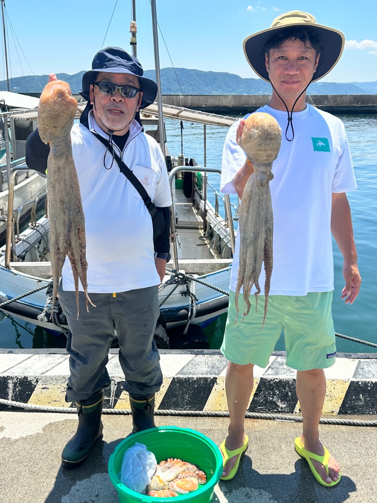 本日は、7名様マダコ釣りで出船、マダコ3.54kg・3.36kg・3.35kgほかキロアップ多数釣れました。