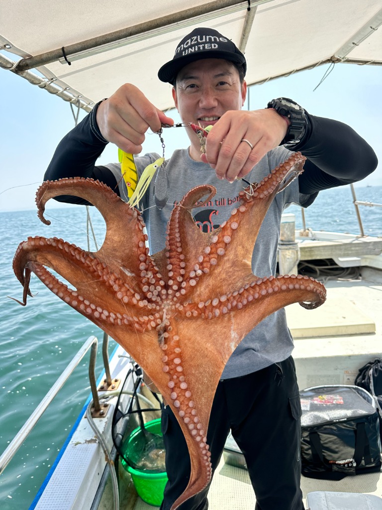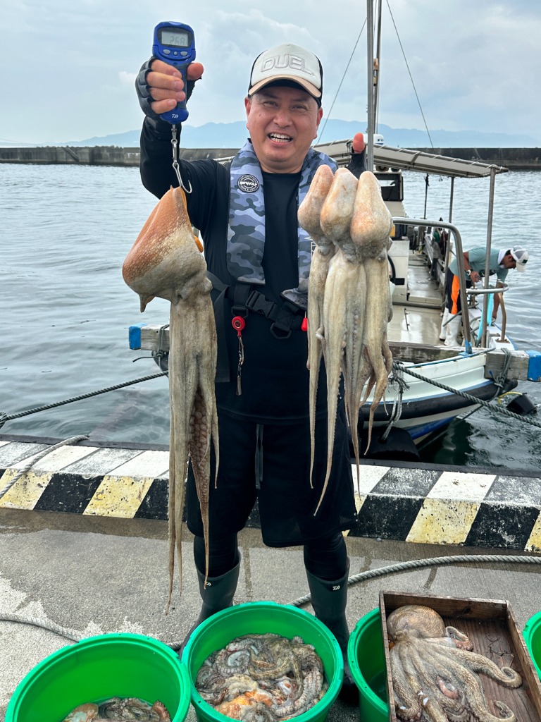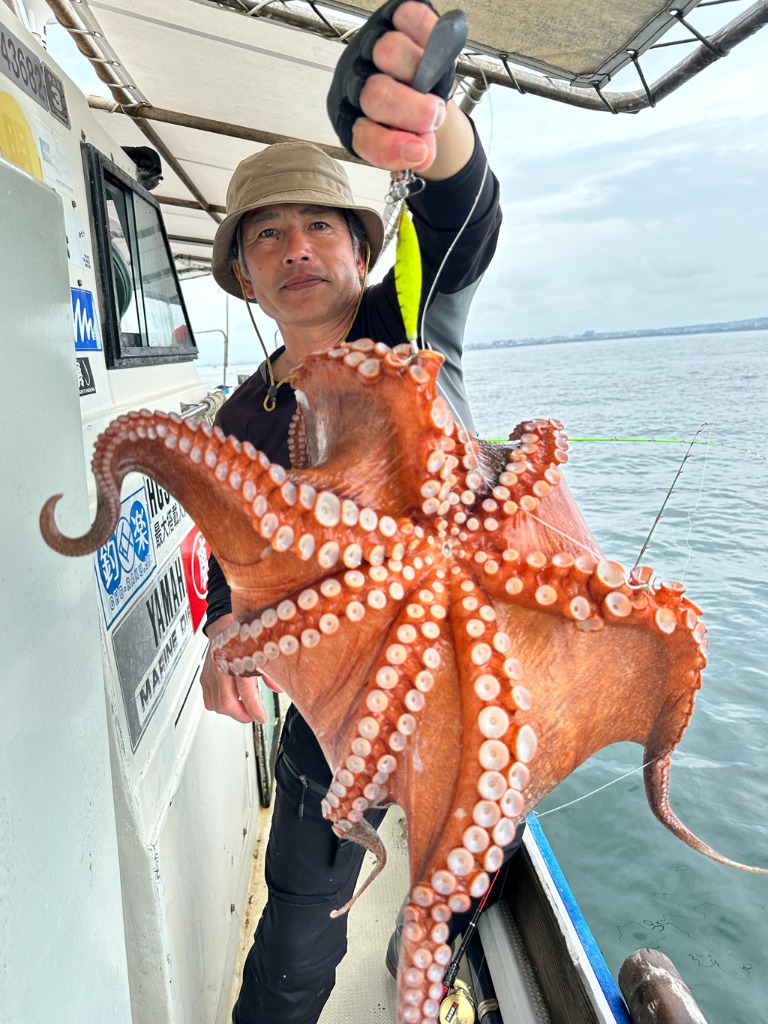 潮が替わってからポツポツと上がりだしたところに中乗りT氏にマダコ2.62kgが釣れました