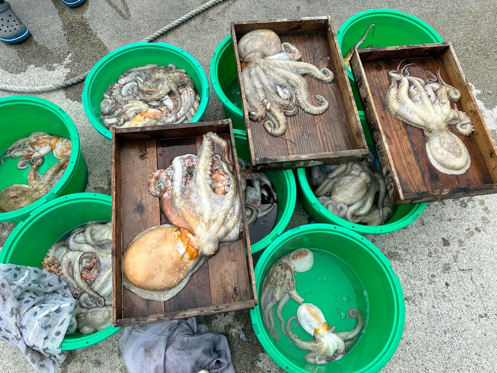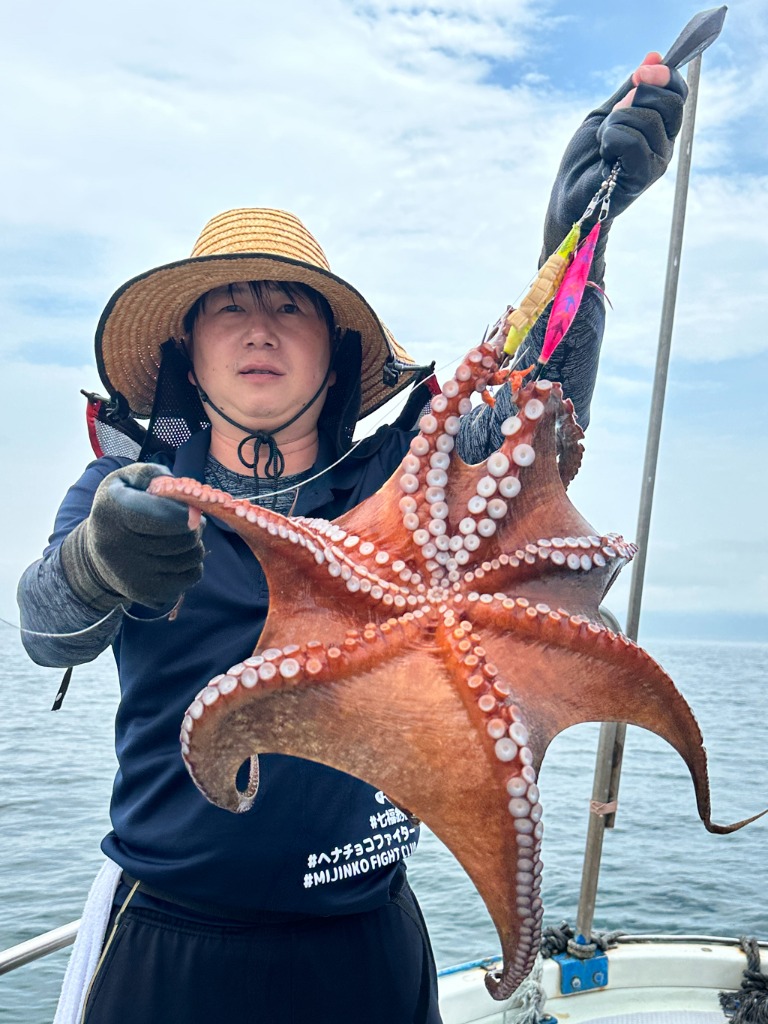 タコ釣り初めての人がバラシもありましたが6杯でした