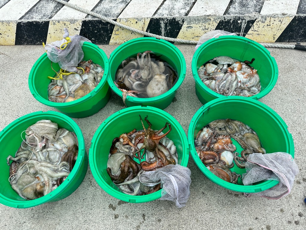 10名様、マダコ釣りで出船。昨日と比べサイズは小さめでした。
