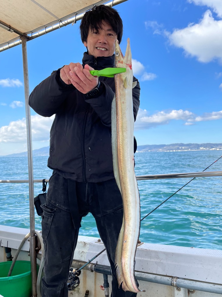 11月29日(土)神戸沖ほか タチウオ便🎣長潮・晴れ タチウオ 80〜95cm ✨船中77匹✨ (20・16・12・10・8・5・4・3匹/8名様) ハモ 96cmも登場! テンヤ&ジギングで全員安打達成👏 タチウオ釣り初めての方も3匹キャッチ🫡 中野様仕立てご乗船、初めてご利用の皆様お疲れさまでした!https://tsuribunekakuta.com/wpress/cyouka-jyouhou/2025/2025-11-29-tatiuo-hmo/