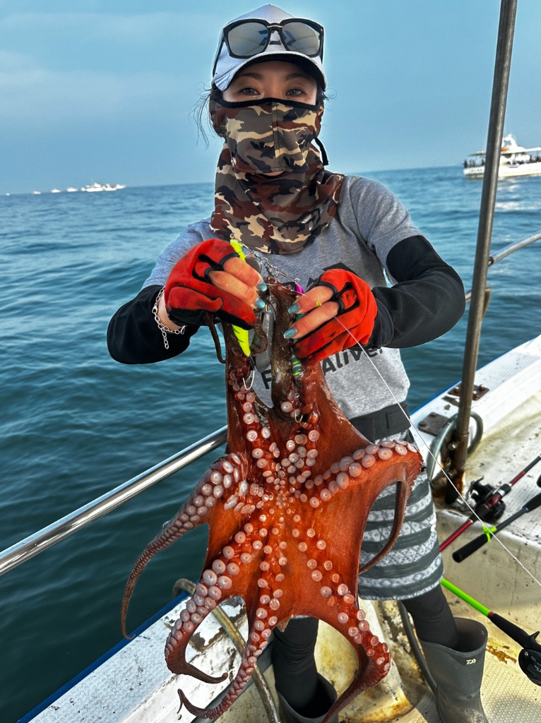 【コメント】 本日は女性4名、男性5名で9名様のマダコ釣りで出船。