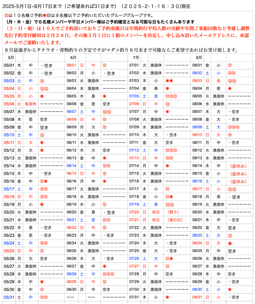 ◉ご予約は釣り船予約カレンダー及びWEB予約より受付中