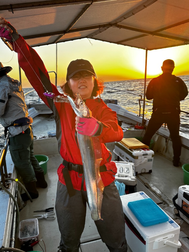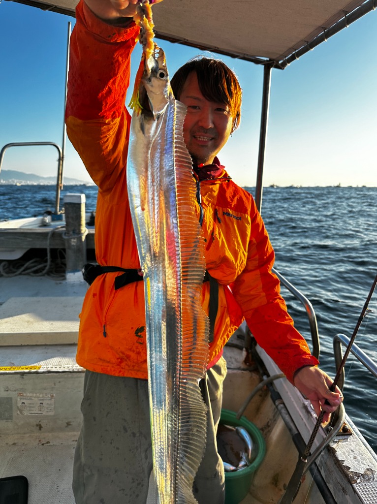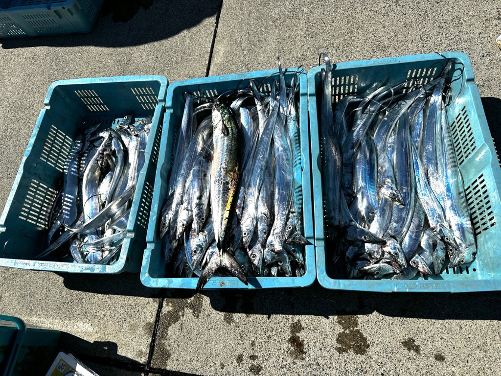 終始よくアタリました。タチウオ:70cm〜100cmを船中110匹に、サゴシ:76cmを船中1匹