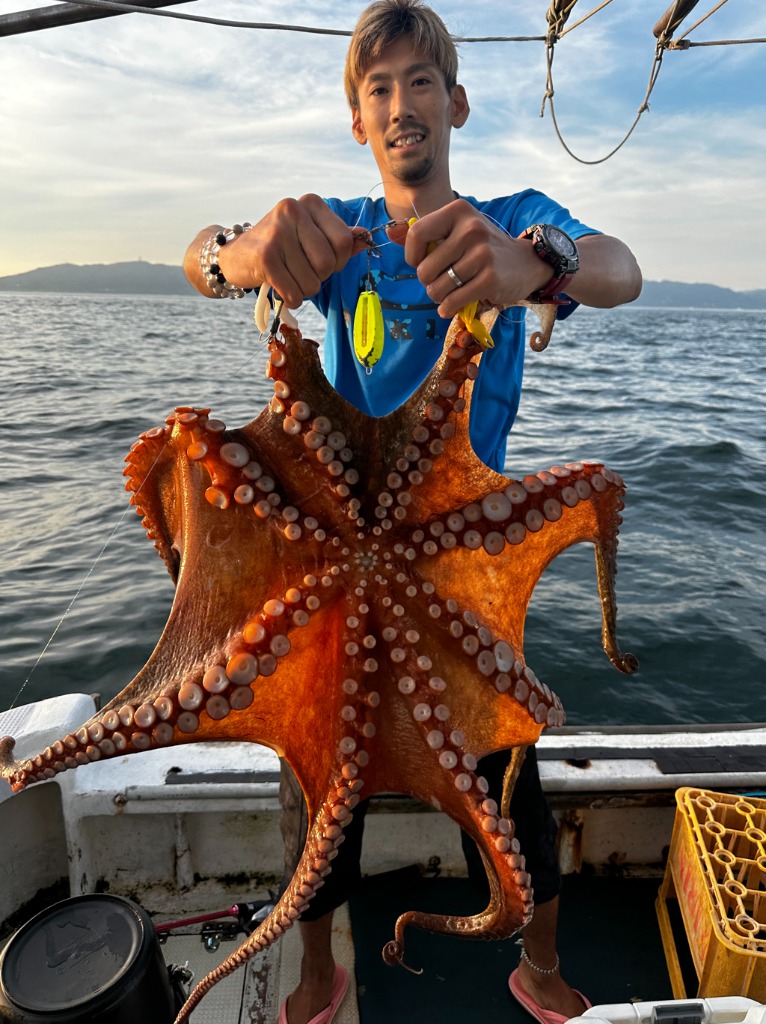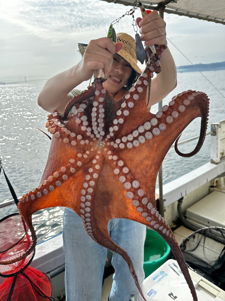 朝イチより自船今期最大のマダコ4.20kgが釣れました
