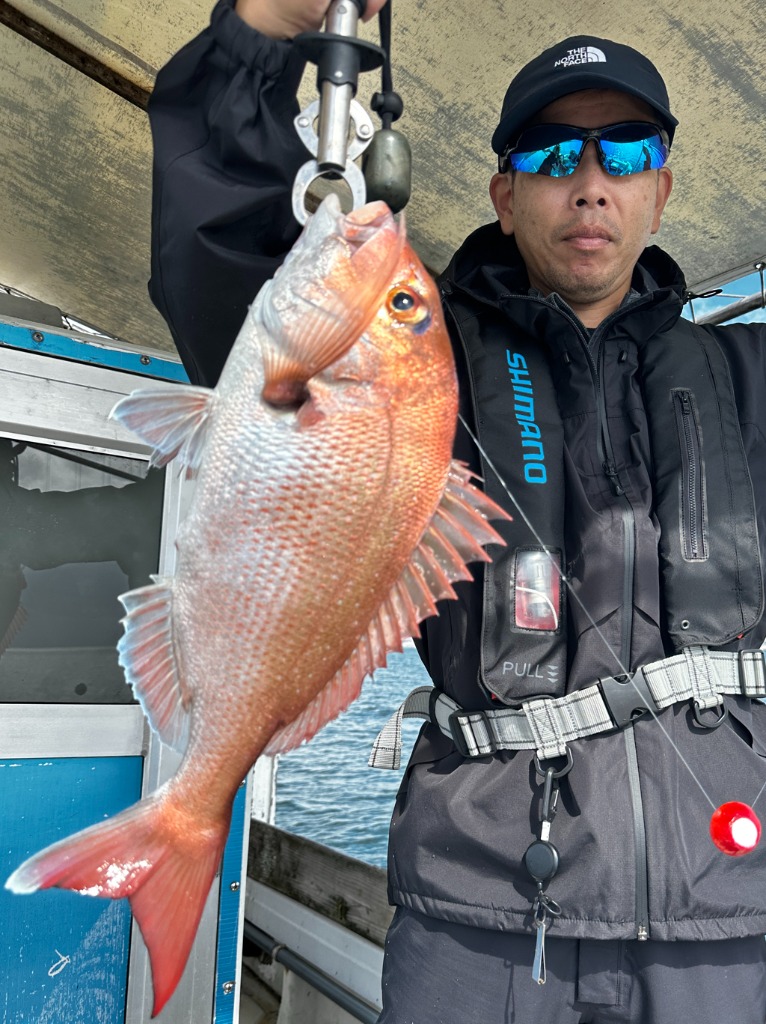 その後、ジギングを挟みましたがヒット無く後半2時間前に、もう一度、タイラバでバラシたかたが、マダイ42cmを、その後ポイント移動、マダイ3匹釣れましたが、こちらも良いサイズの引きでバラシ、残念です