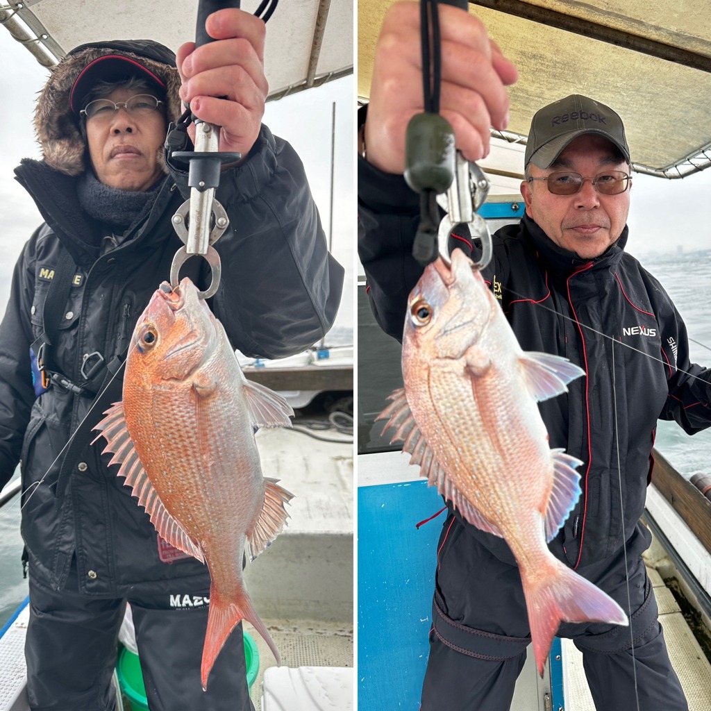 サビキ仕掛けにマダイ2匹など釣れました。雨のパラつく中お疲れ様でした