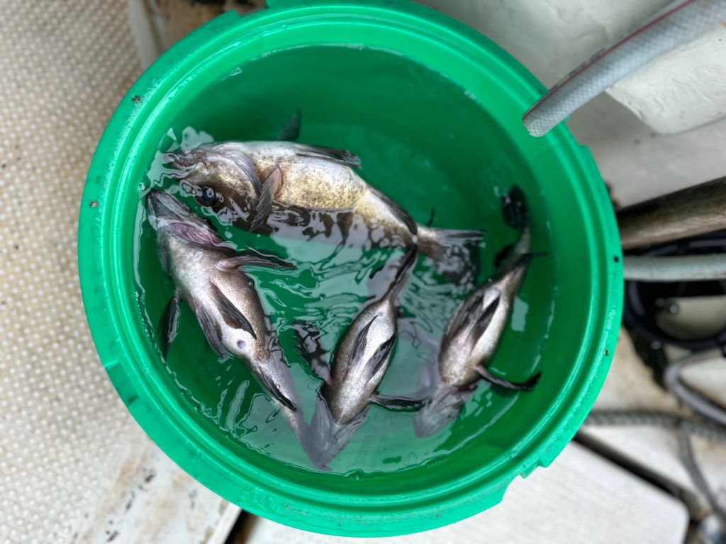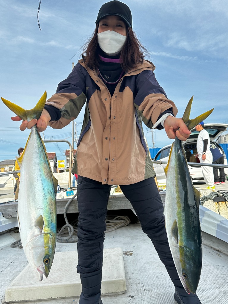 竿頭は女性のかたで、後半にメジロ2匹とタチウオ1匹の釣果。