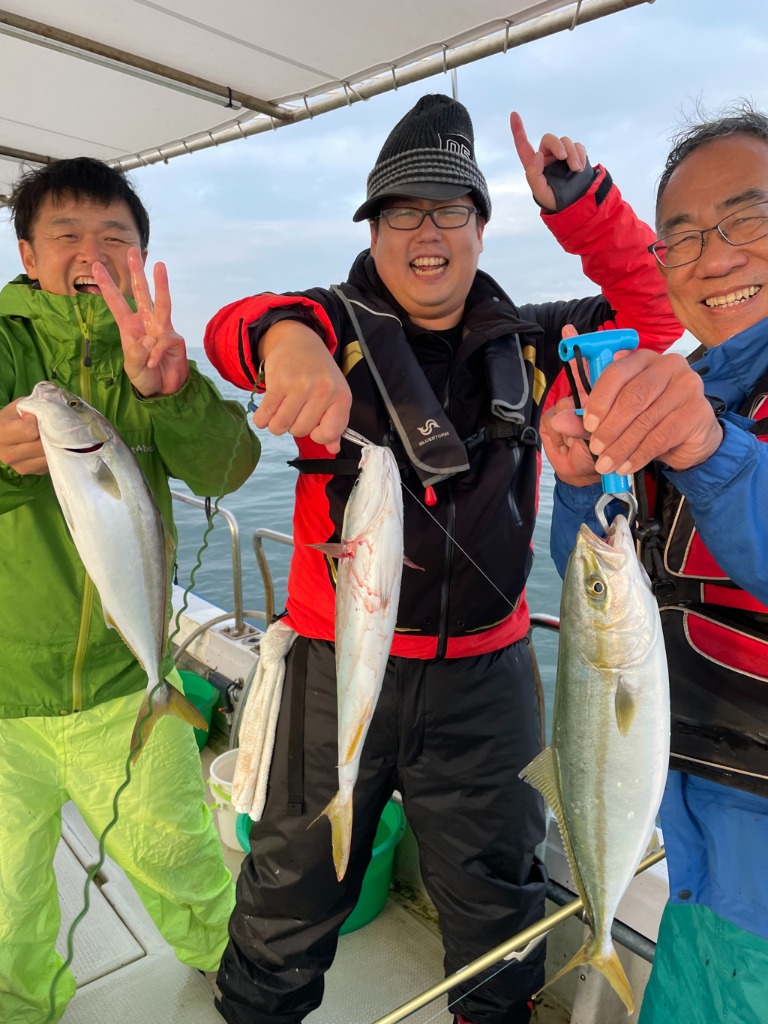本日は、8名様で呑ませ釣りで出船、竿頭はメジロ2匹・ハマチなど3匹にヒラメ1匹で、全員にハマチやツバス・アジなどが釣れました