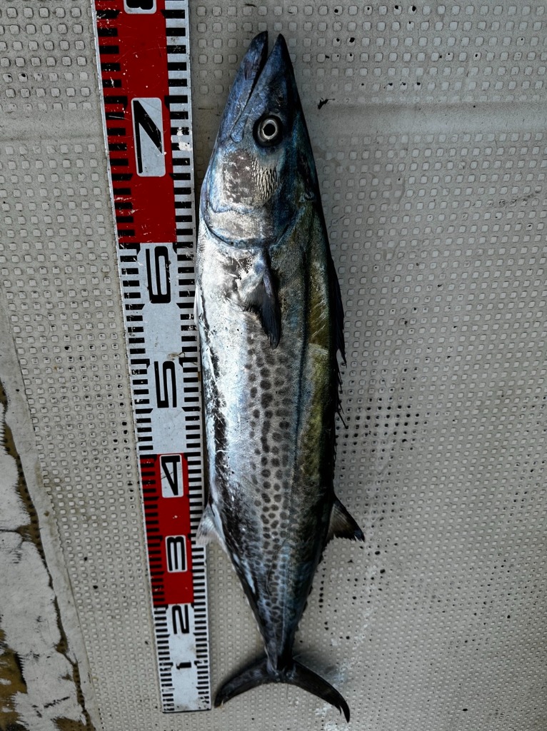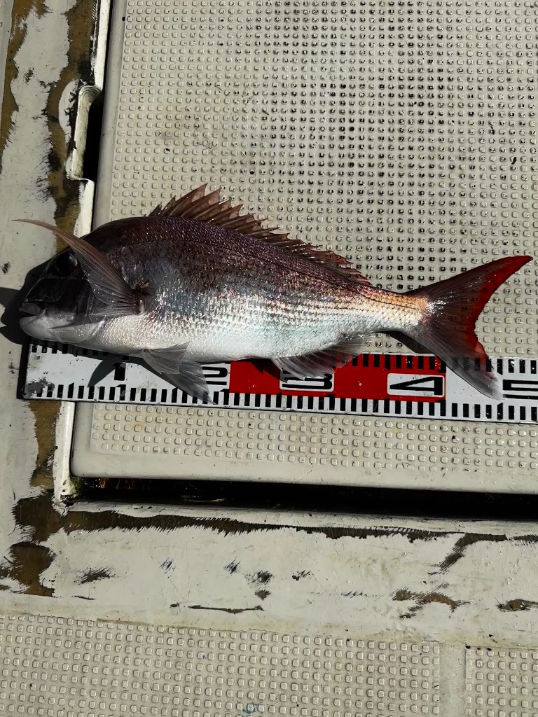 予約空きでしたので、友人2名乗船、自身は竿を出さずで実質2名の釣果です。結果マダイのバラシ2匹ほどありましたが50cmほか1匹もうひとりはサゴシ2匹でした。
