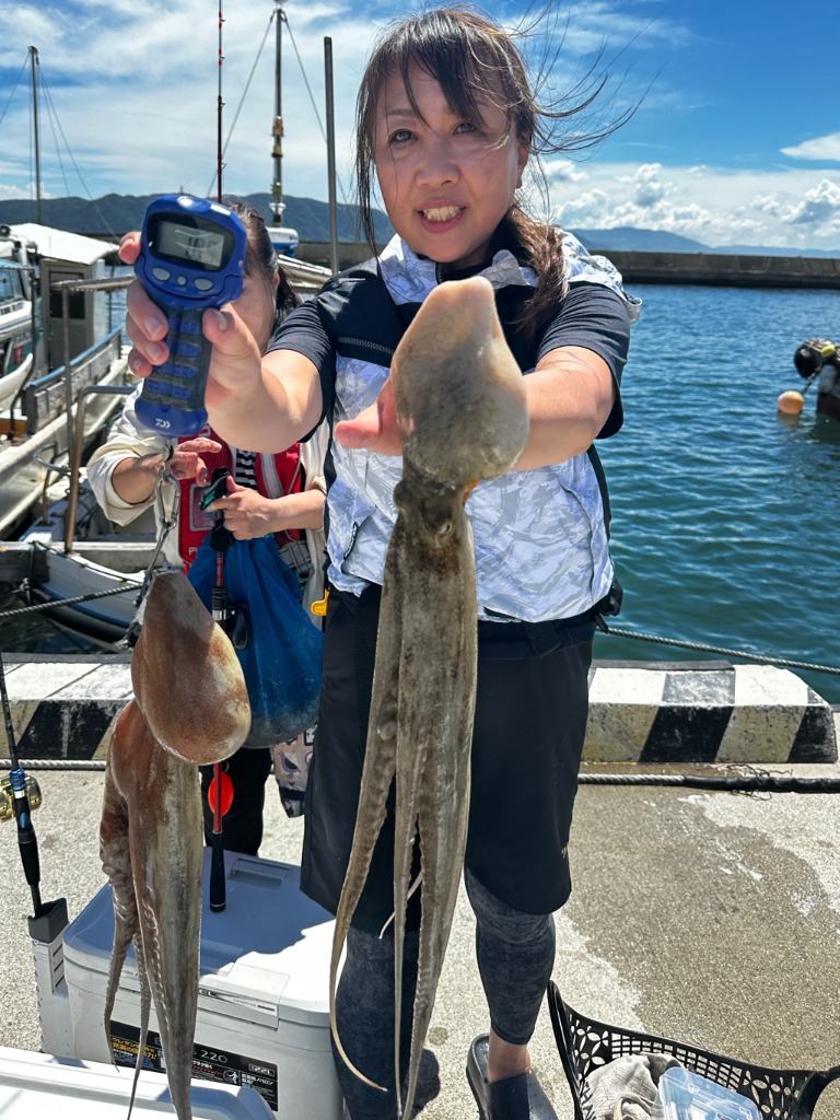 タコ釣り初めての女性に7杯、男性に13杯で、ツ抜けが5人でした。