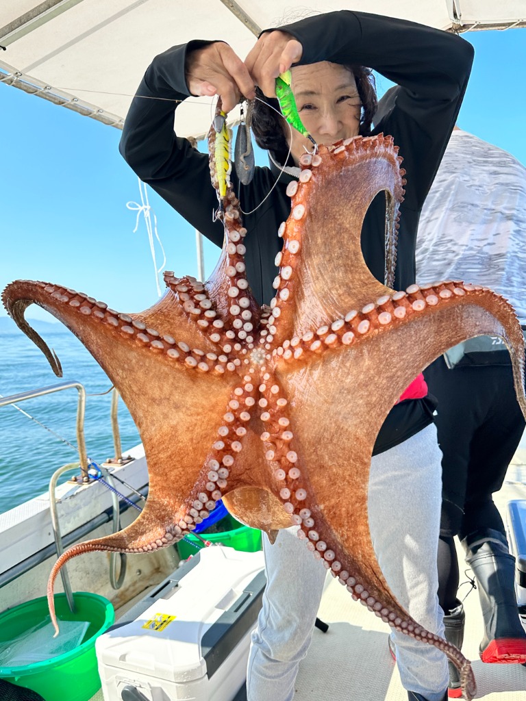 本日は、9名様マダコ釣りで出船、女性にマダコ3.75kgほかキロアップなど釣れました。