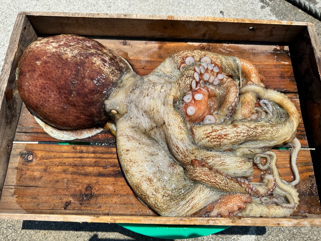 本日は、9名様マダコ釣りで出船、マダコ1.5kgをはじめキロアップなど釣れました。