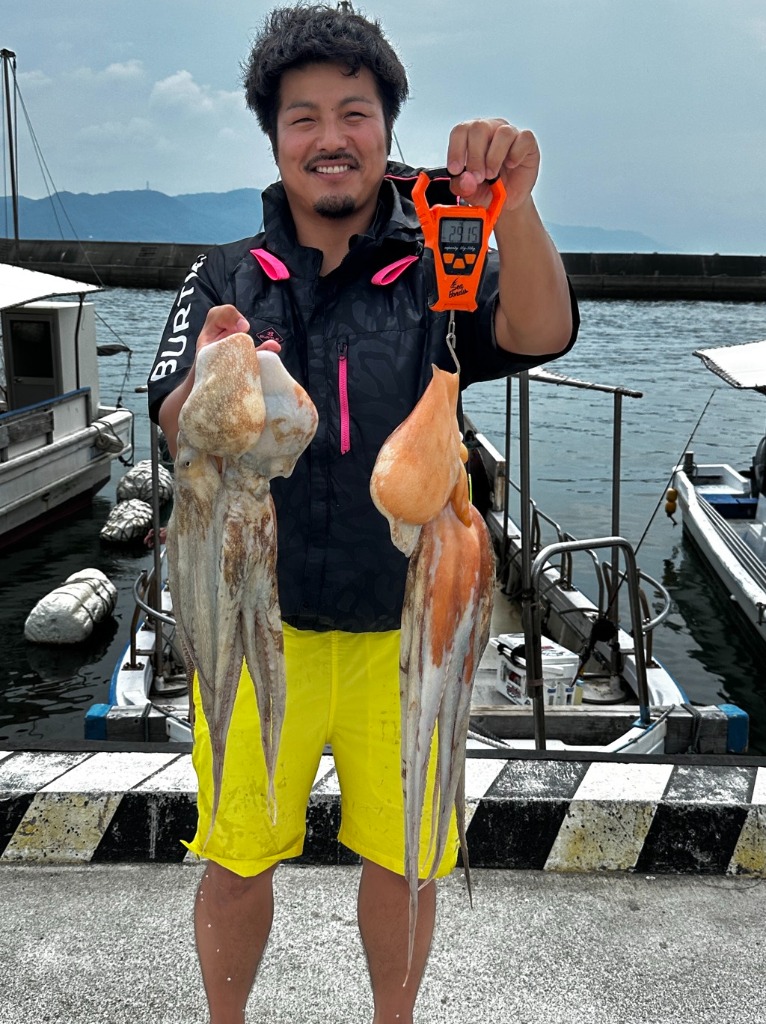 10名様の釣果、おひとりはマダコ2.915kgと1.495kgと1,295kgの3杯釣られました