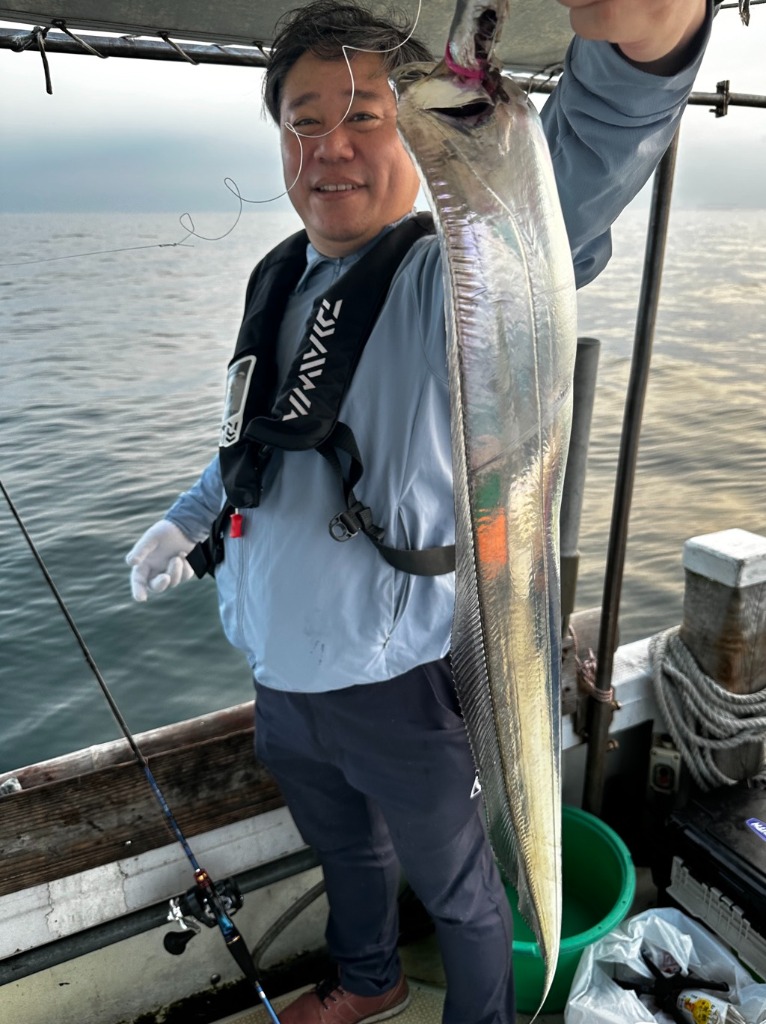 親子でタチウオ17匹で子供さんが97cmをジギングのかたは11匹、その後アジ釣りで2匹掛かっていましたが途中1匹外れ1匹のみでした